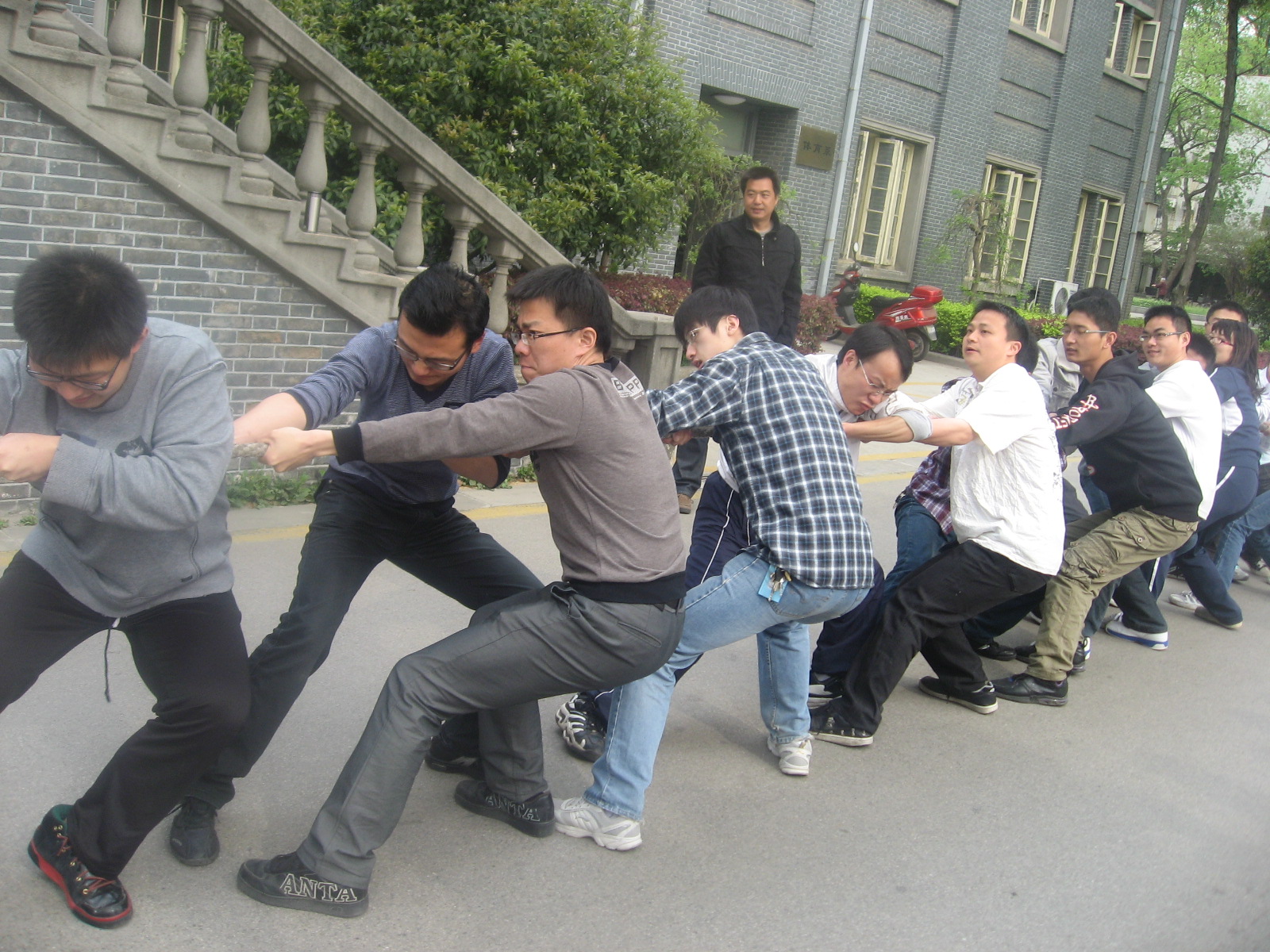 昨天下午最大的成功就是拔河啊,一举拿下物理系,挺进前八。参赛选手包括:田传熙、王昆、刘睿、曹敬国、李毅、王荣超、宫一凡、童华威、刘安、安劲松、吴扬、颜瑞清、兰云意、陈爽、欧梦竹、管海兰、林子英、李云、左晓等同学。