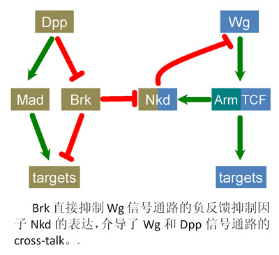 在发育中,细胞分化和模式形成的调控是器官形成的基础。尽管动物的种类千奇百怪,器官的大小和功能各异,但是器官发生仅仅受到有限的几条信号转导通路所控制。这些信号通路高度保守,即它们从低等动物如昆虫到人类都十分类似。因此,通过对模式生物(比如果蝇)的研究可以深入了解它们的分子作用原理。例如,Wnt和BMP信号分子经常共同调控不同器官的模式形成过程,其作用在时间和空间上多有重叠,但是这两条通路之间是否存在交互作用则一直不是十分清楚。杨林等的工作发现两者通过负反馈因子之间的相互作用而建立联系,从而阐明了两条通路之间交互作用的新机制。杨林等采用果蝇翅膀的发育为模型,证实Wnt通路的靶基因Distal-less的表达也受到Dpp(果蝇BMP)通路的影响。由于这些通路和人类肿瘤等疾病密切相关,该发现为理解发育和分化的机理提供了新的认识,为癌症等疾病的发生机制注入了新的见解。有趣的是,人Distal-less基因是已知的孤独症相关基因,因此,该项成果也将有助于对人类精神疾病的深入了解。