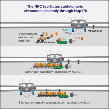 端粒是真核生物染色体中基因调控的一个特殊的位点,位于端粒附近的基因其转录活性往往受到抑制。但是,细胞如何精确地调控端粒末端基因转录沉默的作用机理尚不清楚。万亚坤等应用系统生物学手段分析,发现核孔复合物Nup170的缺失能导致端粒位置效应的消失,Nup170与组蛋白泛素化、组蛋白乙酰化、染色质重塑分子等众多参与染色质结构的基因存在着遗传互作,并发现其与染色质重塑分子Sth1之间存在着物理相互作用。研究人员还系统地绘制了Nup170在基因组的结合草图,发现了Nup170与亚端粒的结合依赖于端粒沉默信息分子Sir4途径。