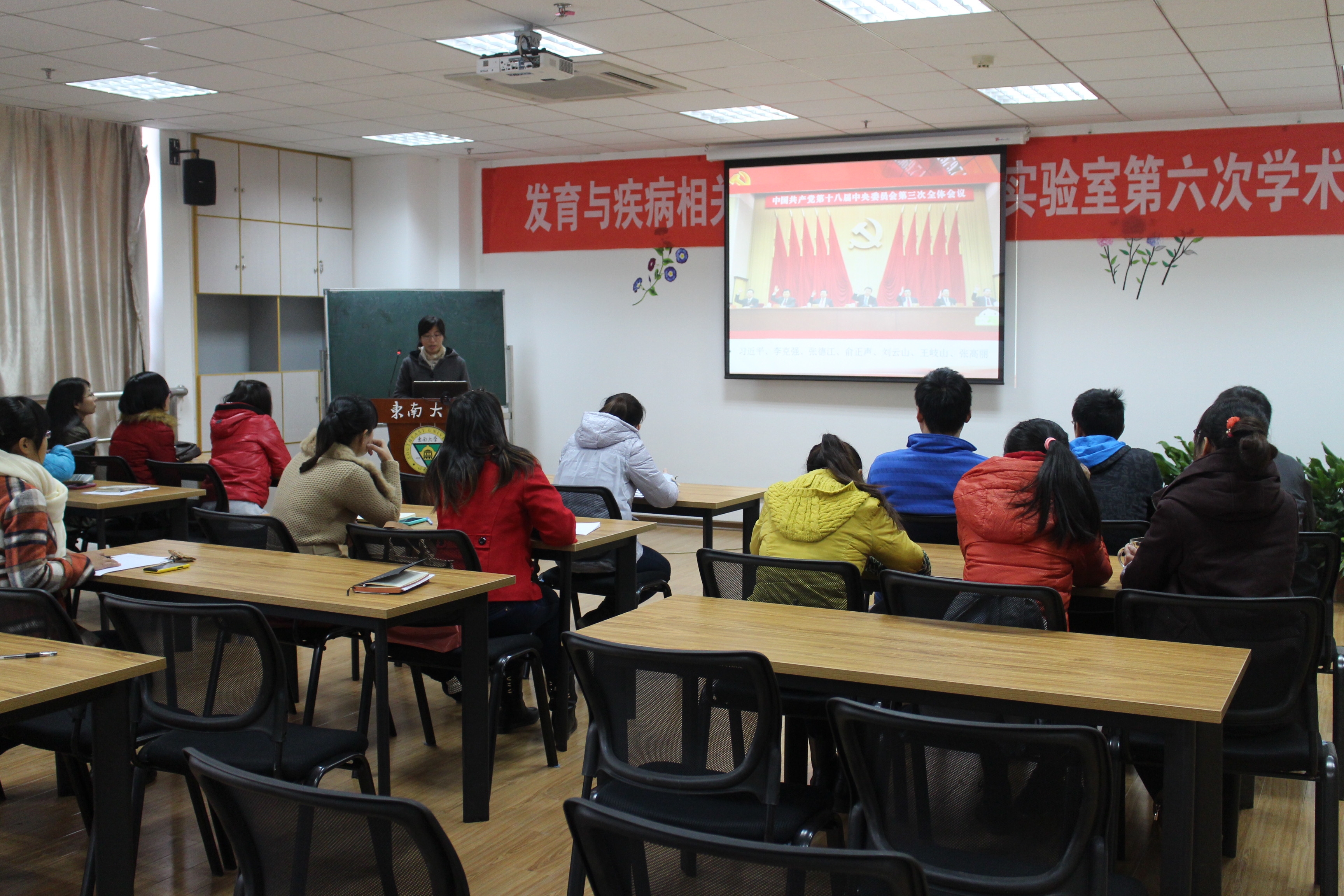 2013年11月30日下午2点,太阳集团tcy87222013级研究生全体党员及入党积极分子在支部书记诸萍组织下于生科院李文正楼南213会议室举办了党的十八届三中全会精神学习汇报活动。