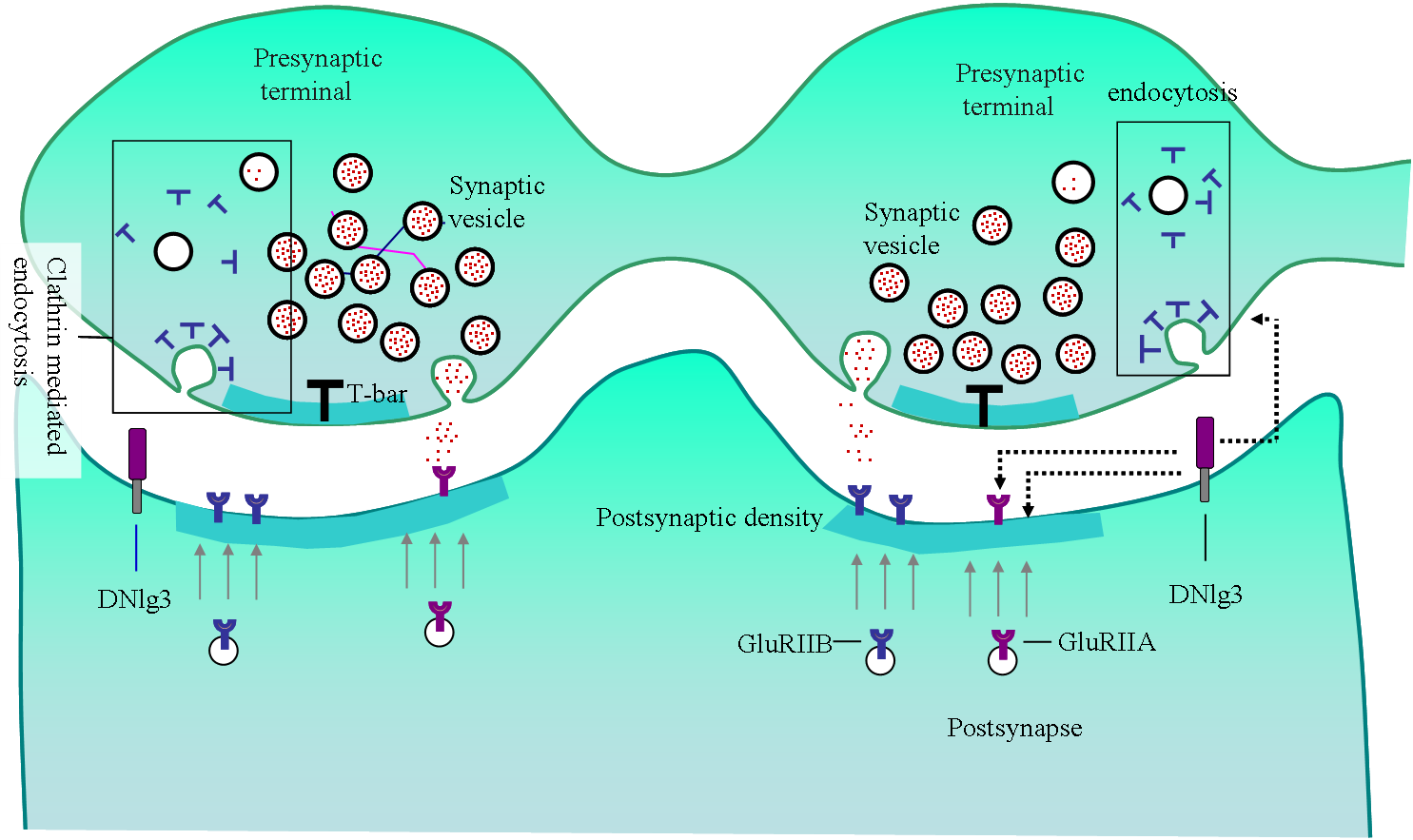 突触是神经活动的基本功能单位,突触的有序形成和正确组装是形成高效神经环路的前提,其异常会导致神经功能障碍和一系列的精神类疾病。体外实验显示突触粘附分子Neuroligin 参与突触的形成和组装,而在体研究表明Neuroligin分子缺失会导致突触功能的缺失。由于Neuroligin基因突变与精神类疾病关联,如孤独症、精神分裂症等,但其致病的分子机制不清。该研究以果蝇神经肌肉接头为模型,分析了Neuroligin3在体功能。研究发现Neuroligin3的缺失会导致神经肌肉接头发育障碍和突触前后组装的异常,突触前囊泡循环缺陷、突触后谷氨酸受体GluRIIA募集降低、以及突触后致密区的成熟障碍,这些缺陷最终导致突触传递的降低,行为异常。本研究详细描述了果蝇Neuroligin3的在体功能,显示其不同于其它Neuroligin分子,表明该分子家族可能共同参与突触发育与稳态调节。