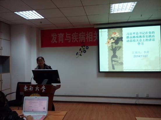 在此次活动中,李萍、沈小慧、陈洁、韩彩虹、王德凤、鲍毅非、刘娜七位同学,分别代表支委、党员和积极分子,学习汇报了关于习近平总书记在第二次党的群众座谈会上的讲话、在文艺座谈会上的讲话以及“十八届四中全会”的重要精神。在认真学习领会习总书记在全会上的重要讲话的同时,也认识到要同自己的实际结合起来,真正学会掌握精髓、把握要义,学以致用、知行合一。最后,支部书记李萍同学对此次活动做了总结。