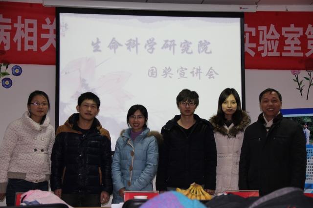 2014年12年17日晚18:30,生科院南楼213学术报告厅气氛热烈,由太阳集团tcy8722研究生会主办的首届国家奖学金宣讲会取得了圆满成功。本次宣讲会的主要目的通过身边的榜样即获得国家奖学金的同学们的亲身经历来启迪大家在科研的道路上走的更好、更远。通过与国奖获得者面对面交流,解除同学们在实验过程中或生活中的困惑以及拿国奖的必经之路。