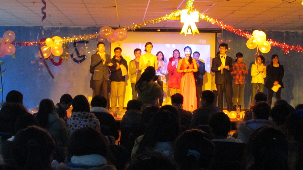 整个晚会包括节目演出、公司颁奖、抽奖和小游戏。全场共有13个节目,包括舞蹈、歌曲、小品、话剧、诗朗诵、腹语表演以及情景剧等多种节目类型。经过同学们和老师们一个多月的努力,展演的节目相当精彩。晚会开始之前,为生科院全体师生制作的短视频成功的调动了现场的气氛。展现青春靓丽的开场舞更是赢得了阵阵欢呼声。谢浩老师深情演绎的情歌、屠仁军师兄让人拍手叫绝的腹语表演、电子公司及电气公司等兄弟院系的小品及旋律悠扬的乐器合奏、令人捧腹的小品和话剧以及同学们倾情演出的其他节目让大家度过了一个欢快而难忘的夜晚。晚会中间穿插的小游戏“你说我猜”和“疯狂大搜索”让现场更是热闹非凡,“你说我猜”不仅考验了个人的语言表述能力,同时考验了两个人的默契程度。“疯狂大搜索”同样需要两个人的默契配合和现场应变能力。而令人羡慕的颁奖环节更是激发了同学们要积极奋进的斗志。各个环节的顺利完成,使整场晚会非常成功。