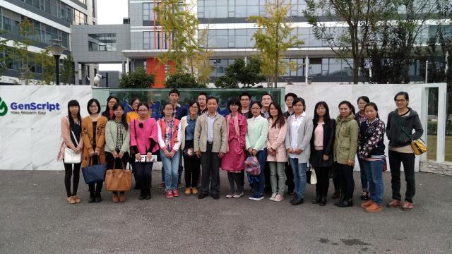 2015年10月30日,公司书记邱振清带领22位2016届应届毕业生前往南京金斯瑞生物科技公司进行参观、学习与交流。此次活动旨在促进企业与员工间的互动,以便毕业生进一步了解公司不同部门、岗位的日常工作,从而更准确地进行职业定位,为顺利走向社会增强职业竞争力。