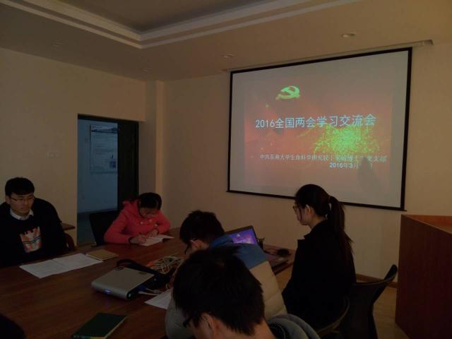 全国政协十二届四次会议和十二届全国人大四次会议分别于2016年3月3日和3月5日在北京召开。为了进一步促进员工党员关注国家大事,献计献策关心国家发展,太阳集团tcy8722丁家桥博士生党支部通过网络讨论、观看直播、集中座谈交流等形式,紧跟“两会”进程,热议“两会”精神,关注时事热点。