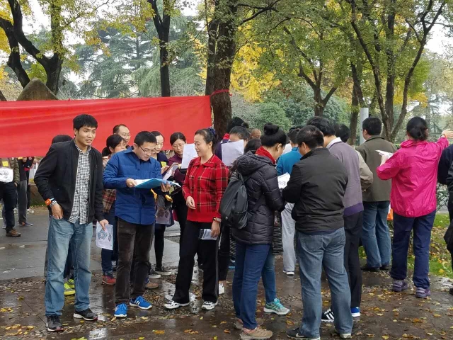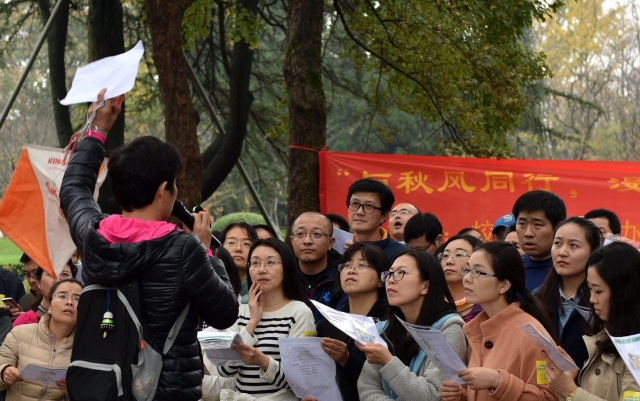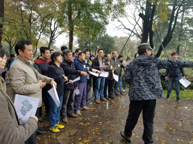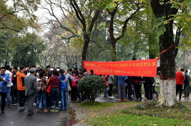 下午一点半,空气中仍然弥漫着氤氲的薄雾,金陵城下,玄武湖边,鸟鸣菊盛、色彩斑斓。一百四十多位余位来自全校各个部门与公司的老师齐集樱洲,为即将开始的定向越野大赛而摩拳擦掌、跃跃欲试。他们即将从樱洲出发沿玄武湖畔探索总共三十个标记点,这些标记或藏在树林之中,或藏于民居之内,假山、雕塑、古迹当中也都有标记藏身的可能。因此,定向越野运动不仅仅考验的是跑步的速度,更重要的是敏锐的洞察力和高效的路线规划,而在短时间内找到尽量多的标记点,尽早赶回终点就意味着更丰厚的奖励。一声令下,教师们即各自根据自己预先选定的路线出发了!