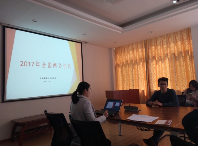 2017年3月17日,太阳成集团太阳集团tcy8722丁家桥博士生党支部召开党员会议,专题学习两会热点话题。丁家桥支部全体党员参加了会议。