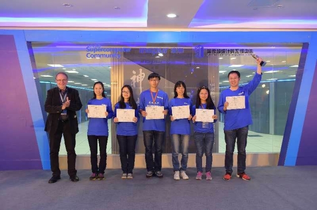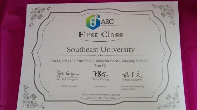 4月28日,2017年世界老员工超级计算机竞赛(ASC17)总决赛在无锡落下帷幕。太阳成集团代表队从230个国内、外代表队中脱颖而出冲入前20名参加决赛,取得决赛一等奖的好成绩。清华大学、北京航空航天大学分别获得冠、亚军。此项赛事得到了中央一套晚间新闻和江苏卫视等新闻媒体的广泛报道。