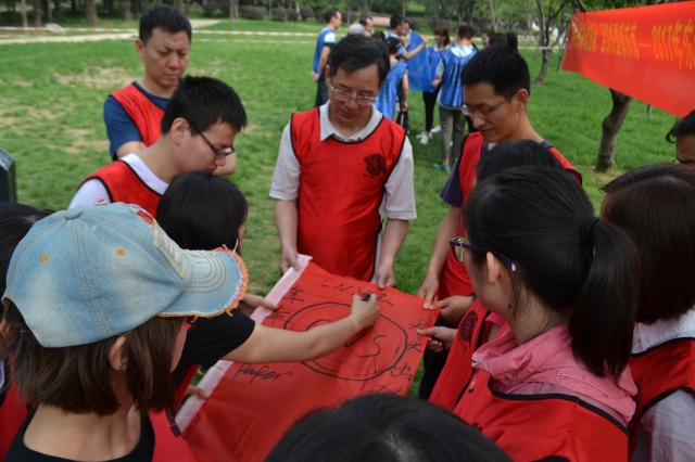 一天的拓展训练大家都汗流浃背,体力达到极限,但是师生们都被团队的凝聚力所感染,大家都不觉苦也不言累。