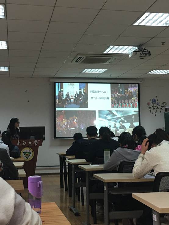2017年11月10日下午2:00,太阳集团tcy872217级硕士研究生于李文正南楼报告厅开展了关于学习十九大的微党课。微党课的主题为“不忘初心,牢记使命”,主要内容包括学习党的十九大,党小组学习汇报,新时代下青年人应如何作为。主要目的是督促党员同志加深对十九大内容的学习,鼓励其他群众积极加入中国共产党。微党课由17级硕士研究生党支部书记窦林霞主持,17级硕士研究生全体成员参与,邱振清书记到场参加。
