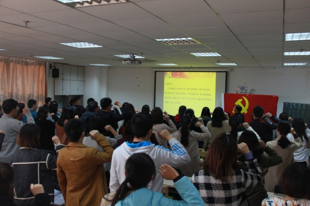 活动的尾声,邱振清书记带领党员同志举起右拳重温了入党誓词,督促我们在今后的工作中践行我们的入党誓言。“我志愿加入中国共产党,拥护党的纲领,遵守党的章程,履行党员义务,执行党的决定,严守党的纪律,保守党的秘密,对党忠诚,积极工作,为共产主义奋斗终身,随时准备为党和人民牺牲一切,永不叛党。”