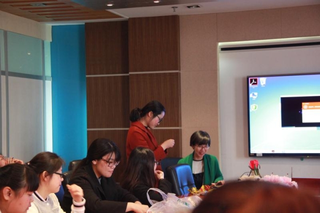活动伊始,肖笑老师大方分享了自己的恋爱经历,总结出的恋爱经验对女生们来说都是满满的“干货”。本次活动还为女生们准备了各种美味的小零食,让大家暂时放下科研的压力,放松心情,畅所欲言。在欢快的背景音乐中,“击鼓传花”游戏进行的如火如荼。当音乐暂停时候,拿到锦囊的人抽取一个问题发表自己的看法,这些问题涉及恋爱、婚姻、家庭、事业各个方面。在场的女生都积极参与到讨论中来,表达了各自的爱情观、家庭观和事业观。总的来说,相比较物质生活,女生们普遍更看重情感的契合,也表达出即使有了家庭后也不会放弃事业的想法。