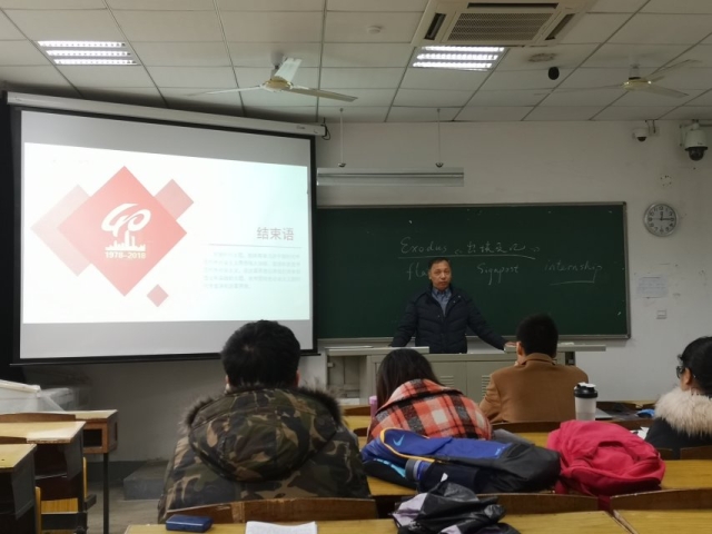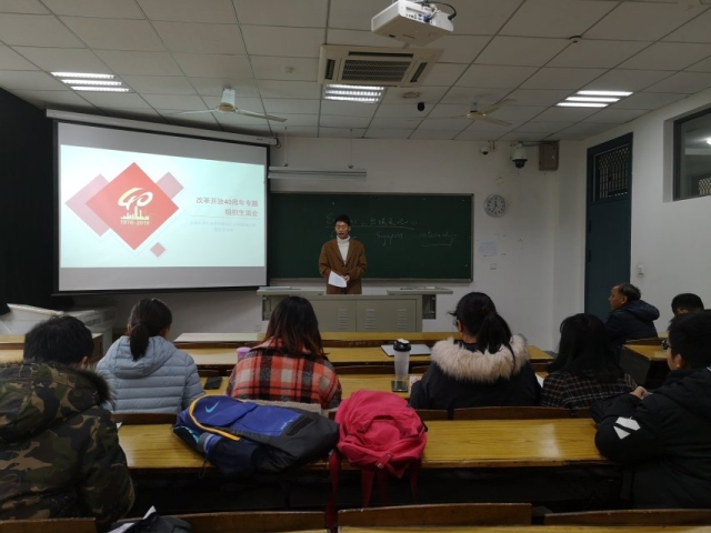 党支部书记丁嘉伟用一张张生动的图片带着我们回首了过去,我们40年的风雨历程,虽路途艰辛,但是硕果累累。从70年代的“鸡毛换糖”到2017年“全球电商”,从“恢复高考”到“高考誓师”,从“绿皮车”到“子弹头”,从“烂泥渡”到“世界级金融中心”,从“下馆子”到“点外卖”,从“大哥大”到“手机控”, 改革从城市到农村、从东部到西部、从经济领域到其他各个领域全面展开,逐步深化。使中国社会发生了全方位的历史性转变。
