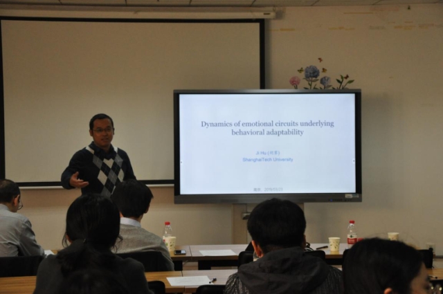 上海科技大学胡霁教授的报告题目是“Dynamics of emotional circuits underlying behavioral adaptability”。胡霁教授首先报告了关于压力缓解的神经机制研究进展,当今社会,人们承受着来自各个方面的压力(应激),长期应激会导致严重的神经精神疾病,比如焦虑和抑郁。为了应对快速变化的、高度紧张的环境,大脑也发展了应对压力的机制,以促进身心健康。胡霁教授通过研究证实,室旁核CRH神经元可以快速地被各种应激刺激所激活。另外,非常有趣的是,室旁核的CRH神经元还能被奖赏快速且强烈地抑制,并且奖赏可以缓解应激导致的行为和激素异常。这些发现揭示了应激与奖赏整合的一个新的神经机制,也提示干预室旁核的CRH神经元的活动以及其相关神经环路可以为治疗压力相关疾病提供新思路。另外,胡霁教授还报告了他们的最新工作,关于痒的神经环路机制研究。