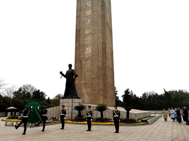 首先我们在雨花台群雕前进行悼念烈士的活动,首先邱振清书记简要介绍了雨花台的历史背景和主要几个共产党员的革命经历。然后全体党员全体肃立、脱帽、默哀三分钟表达对革命烈士的尊重和哀思,伴奏国际歌,我们在邱书记的领誓下一起重温了入党誓词:“我志愿加入中国共产党,拥护党的纲领,遵守党的章程,履行党员义务,执行党的决定,严守党的纪律,保守党的秘密,对党忠诚,积极工作,为共产主义奋斗终身,随时准备为党和人民牺牲一切,永不叛党"。 我们时刻都要保持警惕心,不忘初心。结束后大家一起在雨花台群雕前合影。