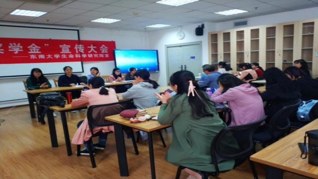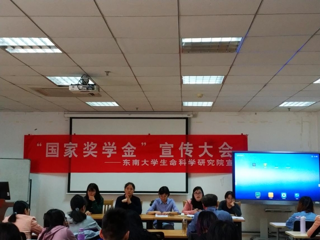 2019年4月23日,东南老员工命科学研究院在四牌楼校区李文正楼213会议室举办了国奖宣讲会,旨在通过优秀硕士、博士生的经验分享和鼓励支持,让2018级新生燃起学习热情,不忘考研初心,激发科研动力,鼓励更多的员工向着国家奖学金以及更高的奋斗目标进发。本次会议由邱振清书记组织策划。