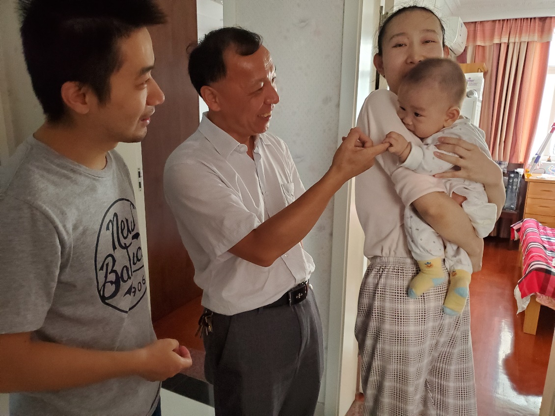 在教职工家中,邱振清书记详细询问了产妇产后的身体恢复情况及婴儿的健康状况,同时叮嘱职工要养精蓄锐,照顾好宝宝。大家像家人一样坐下来聊天,有说有笑,场面十分温馨。