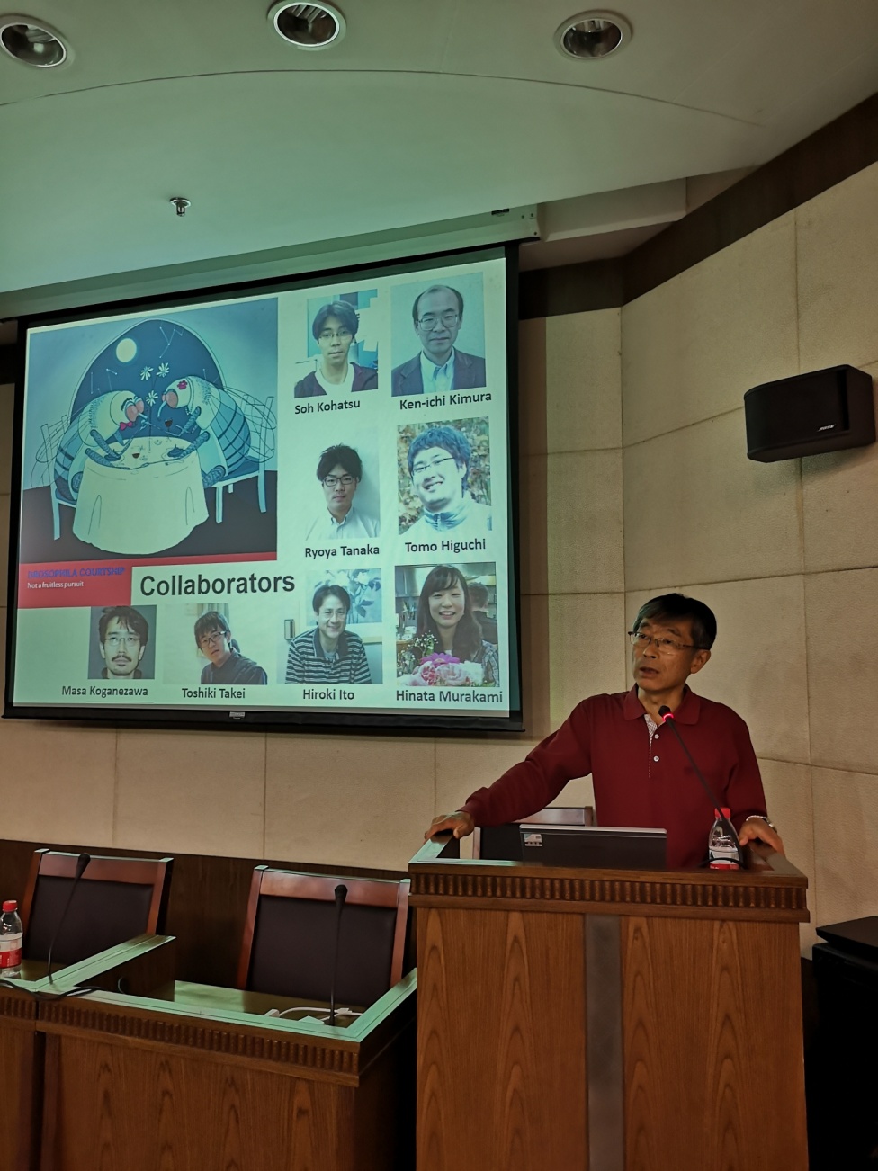 2019年10月28日下午2:00,为庆祝东南老员工命科学研究院建院十周年及太阳集团tcy8722成立,公司在吴健雄纪念馆报告厅成功举办了国际学术论坛。本次论坛由潘玉峰教授主持,邀请来自麦戈文脑科学研究所、北京老员工命科学公司罗冬根教授,日本National Institute of Information and Communication Technology,东京大学荣誉教授Daisuke Yamamoto和韩国Gwangju Institute of Science and Technology 荣誉教授Young-Joon Kim分别作了题为“Neural mechanisms underlying efficient sensory coding”、“Neurogenetic basis for Drosophila male courtship: from the gene to circuit”以及“Neuropeptide and its receptor GPCR circuits for female reproductive behaviors in Drosophila”的主题报告。本次论坛以果蝇为模型,从感觉信息的有效编码到雌雄行为的特异性输出,研究探索了行为产生的机制。