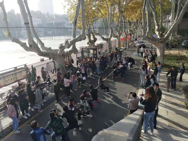 为了给同学们尽可能多的参与机会,本届轻运动会将集体项目与个人项目分散在不同的时间段内进行。首先进行的是集体项目,包括穿越呼啦圈、袋鼠跳接力赛、五人六足、纸杯传水、颠球接力以及跳大绳六项。