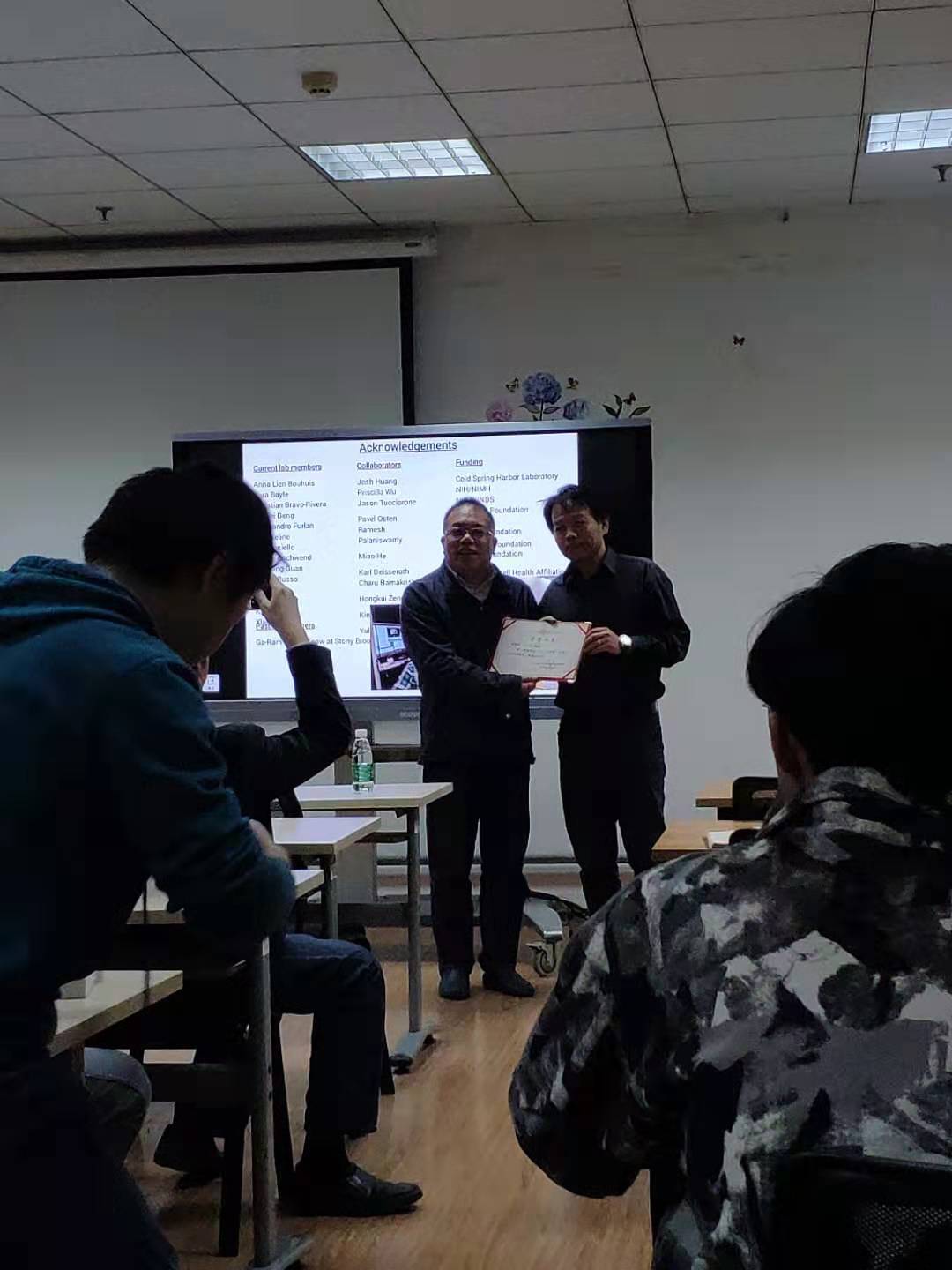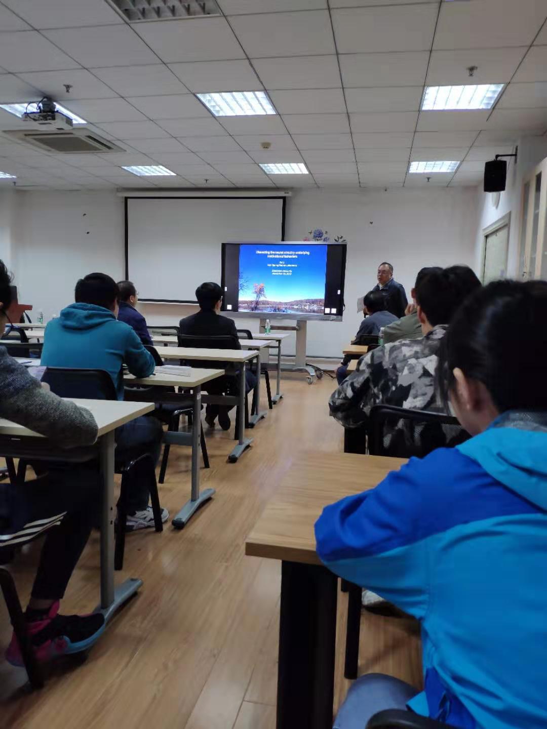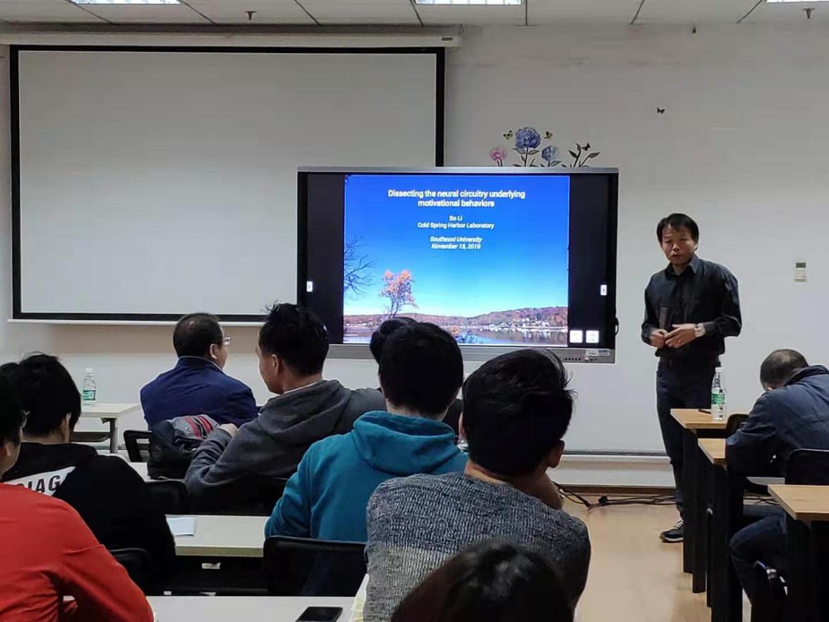 2019年11月15日下午,来自Cold Spring Harbor Laboratory的BO LI 教授为公司师生带来名为“Dissecting the neural circuitry underlying motivational behaviors”的前沿科技讲座,此次讲座由公司陆巍教授主持,地点为李文正楼南213会议室,公司众多师生到场参加,此次讲座属于公司“三江大讲堂”学术报告系列。