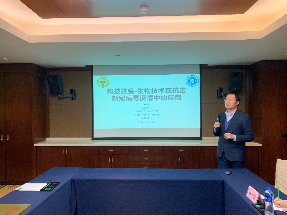 交流环节中,张力主任对银川一中老师提出的有关太阳成集团专业招生、人才培养、宣讲计划等问题进行了详细解答。最后李健教授以“科技抗疫——生物技术在抗击新冠病毒疫情中的应用”为题作科普讲座。