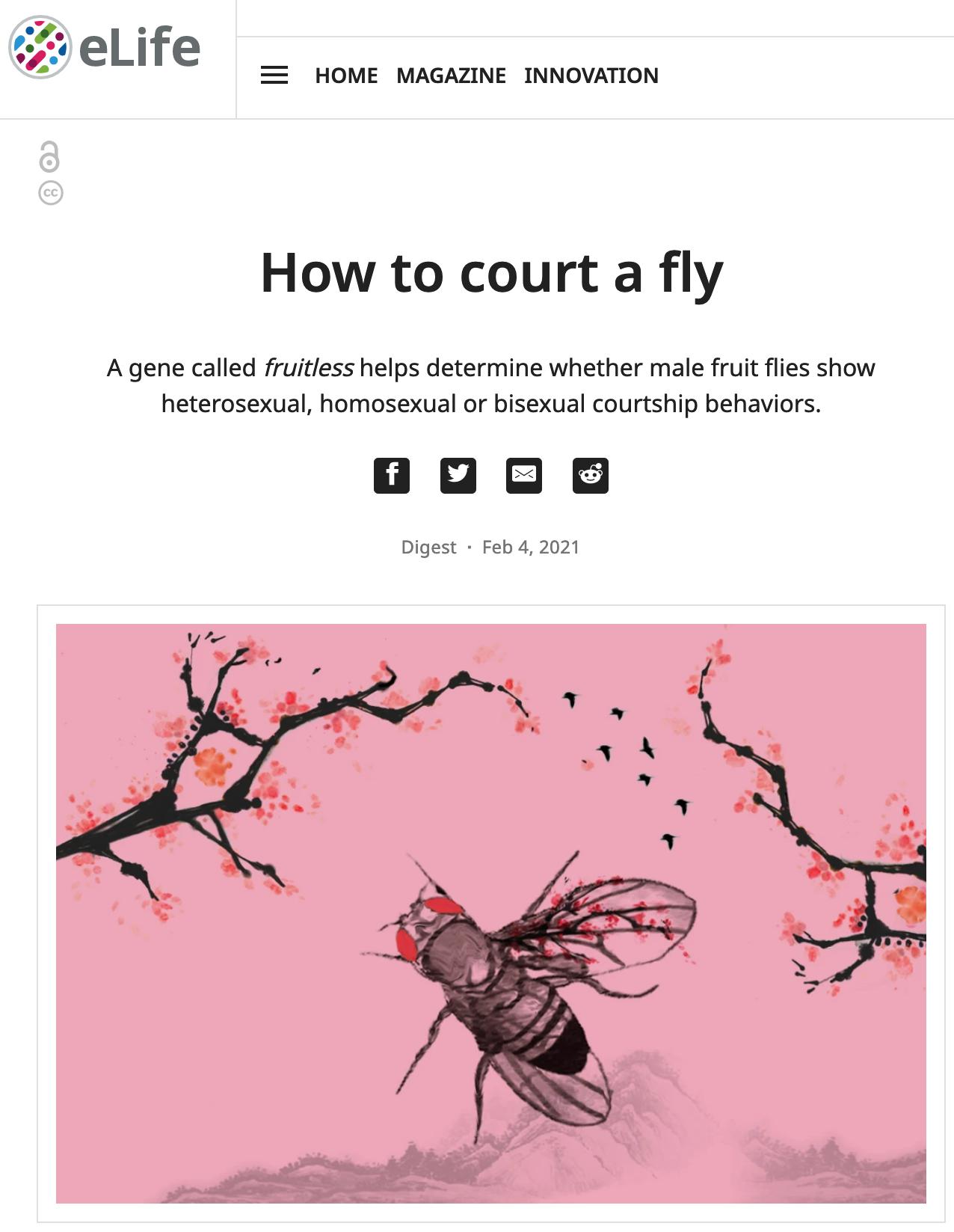 3.Manoli, D.S., et al., Male-specific fruitless specifies the neural substrates of Drosophila courtship behaviour. Nature, 2005. 436(7049): p. 395-400.
