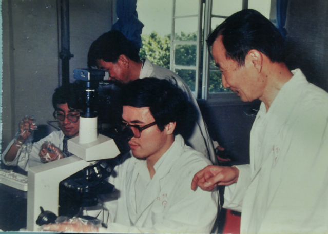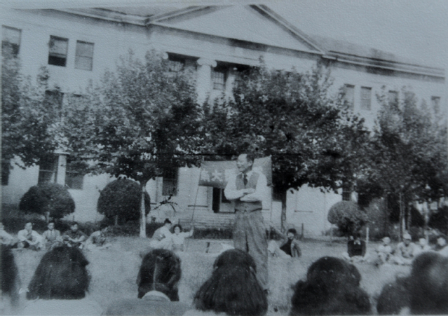 解放初蔡翘和同学们在生物学馆前席地畅谈