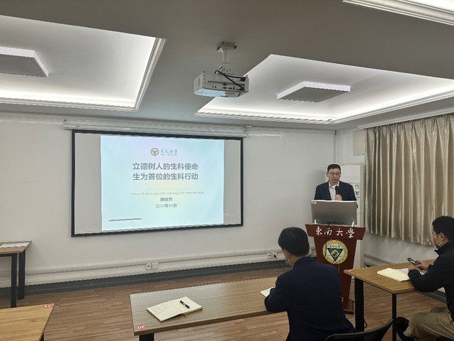 韩俊海经理作了题为“立德树人的生科使命,生为首位的生科行动”动员讲话。他指出,党和国家对于生命科学领域领军人才的标准和要求在不断提高,这就需要我们通过教育思想大讨论提升教学思想、增强教学技能、完善培养体系。韩经理强调,全院上下必须高度重视教育思想大讨论,做到全员参与、务求实效、凝聚共识,践行立德树人的生科使命,落实“生为首位”的生科行动。