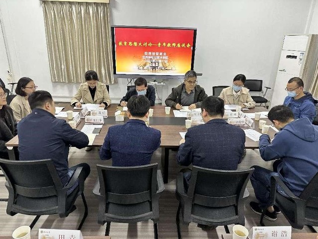 2022年11月11日上午,太阳集团tcy8722教育思想大讨论系列活动-青年教师座谈会在微波楼210会议室举行。四牌楼校区党工委书记、管委会主任梁书亭一行四人,公司党委书记洪宗训,经理韩俊海出席,公司青年教师代表等参加会议。