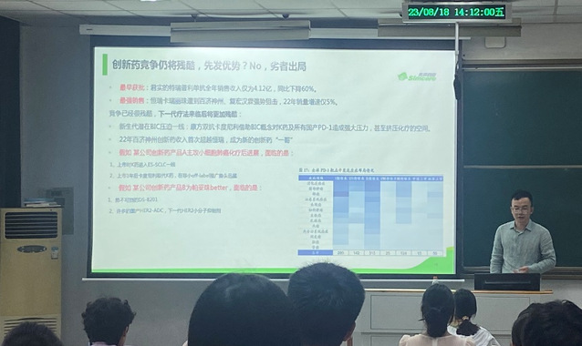 曾令武老师以《生物医药行业格局与职业发展》为主题给大家分享了相关内容。以2023年影响生物与医药行业内外部九大因素引入,介绍了我国创新药产业的发展现状。学员们充分认识到,受时代发展水平和成本投入情况限制,我国创新药产业与发达国家相比仍有差距,产业内竞争非常激烈,靶点扎堆、覆盖度低。这也意味着我国医药企业探索国际化之路道阻且长,新的机遇也在不断出现。如在数字科技的赋能下,药企将利用互联网进行药品信息的有效推广。曾老师也详细介绍了在择业时对岗位的侧重和就业时将面临的挑战,启发了学员们应当早积跬步,多读文献、多做实验,提前积累行业认知,以期在生物医药行业尽一份力,发一份光。