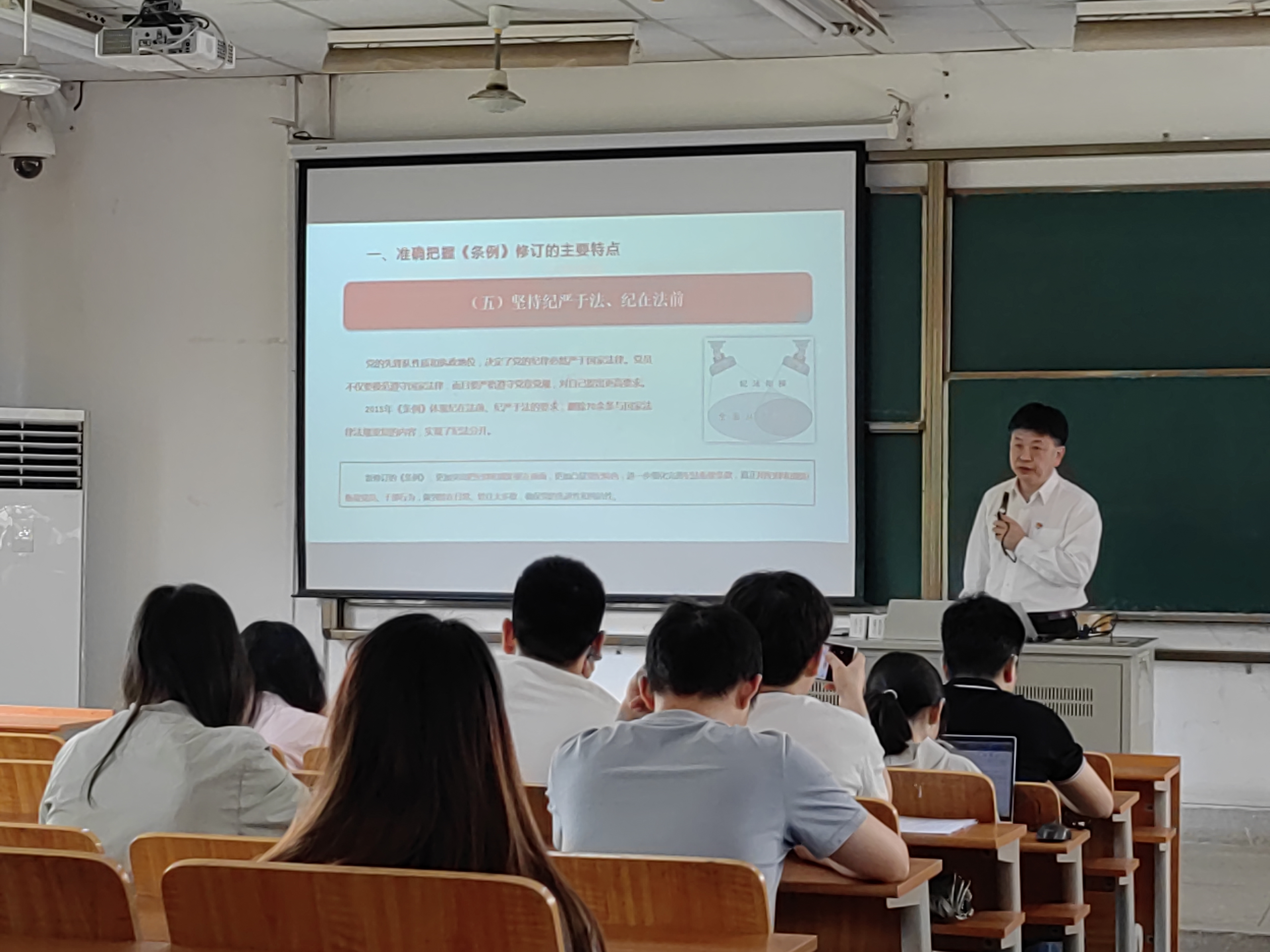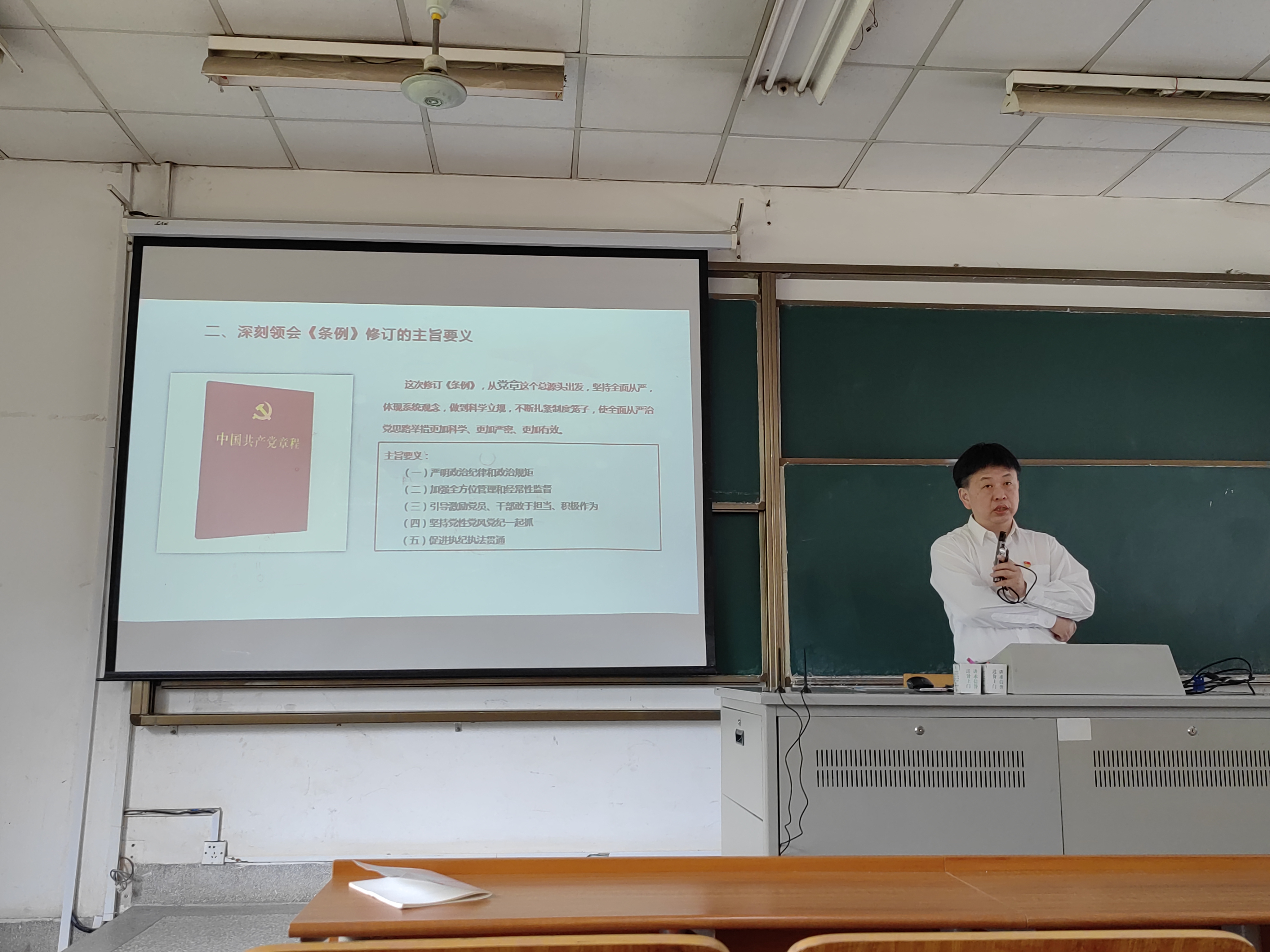 洪宗训老师分别从准确把握《条例》修订的主要特点、深刻领会《条例》修订的主旨要义、切实抓好《条例》的贯彻执行三个方面进行讲解,为太阳集团tcy8722各支部党员上了一次生动的思想和理论学习课。他强调,党员同志要严明政治纪律和政治规矩,敢于担当、积极作为;要以党纪学习教育为契机,做到真学真悟,不断加强党性修养,让学纪、知纪、明纪、守纪成为自觉。