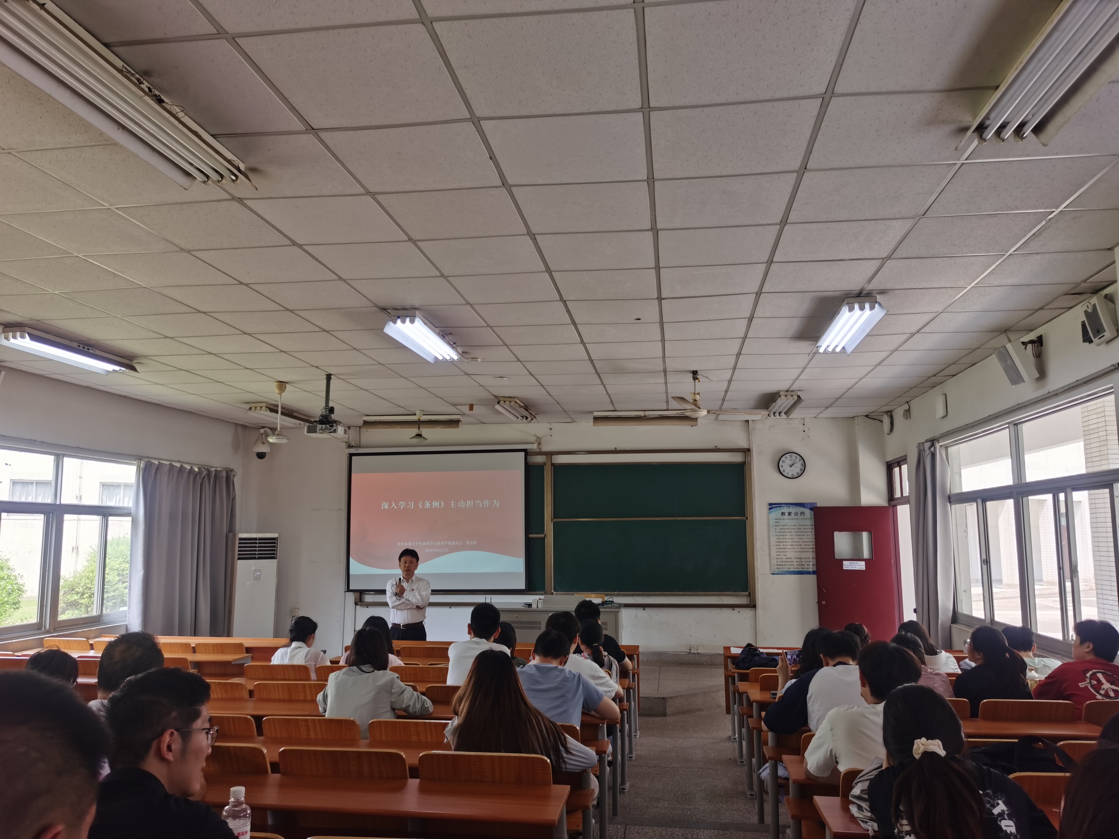 习近平总书记强调:坚强的党性、优良的作风、严明的纪律是我们党的鲜明特点。为深入领会并践行《中国共产党纪律处分条例》的精神,以严谨的作风确保党纪学习教育落到实处,2024年6月12日下午,太阳集团tcy8722在江北校区金坛院112教室开展党纪学习教育专题培训。本次专题培训主题为:深入学习《条例》,主动担当作为。由东南老员工命科学与技术公司党委书记洪宗训老师主讲。