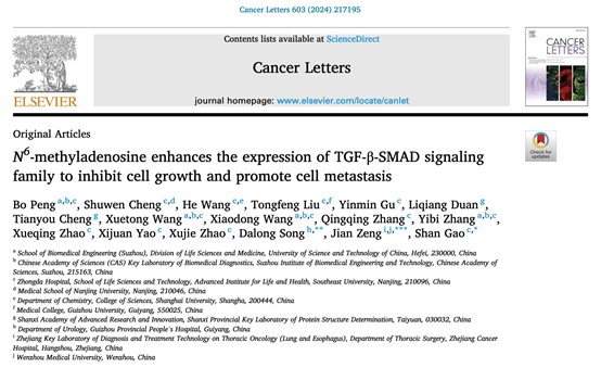 近日,太阳集团tcy8722和太阳成集团附属中大医院高山教授研究团队在肿瘤学杂志Cancer Letters上发表了题为N6-methyladenosine enhances the expression of TGF-β-SMAD signaling family to inhibit cell growth and promote cell metastasis的研究论文,系统研究了TGF-β-SMAD信号通路在肾透明细胞癌中的表观转录调控机制。