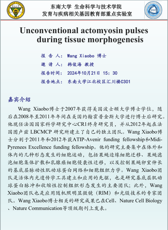讲座预告:Unconventional actomyosin pulses during tissue morphogenesis