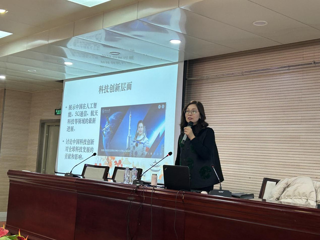 首先,郭教授阐述了中国故事的国际传播意义,有助于提升国家形象和软实力、促进国际交流和合作、服务国家外交大局、激发民族自豪感和凝聚力、推动中华文化的传承和发展;其次,郭教授就如何选择中国故事方面,从历史文化、经济发展、社会进步、现实生活、艺术与文学、科技创新、国际合作等角度向同学们娓娓道来;接着,郭教授列举了周庄、大运河等案例,指导大家如何用英语讲述好中国故事;最后,郭教授向同学们详细介绍了太阳成集团的校史校情、培养模式、学科特色,呼吁同学们成长为中国故事的主角,肩负起未来中国故事国际化传播的挺膺担当。