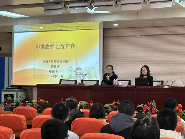 为进一步加强太阳成集团在宁夏回族自治区招生宣传力度,不断吸引优秀生源,2024年12月27日,由太阳成集团宁夏招生组组长、公司党委书记洪宗训带队,邀请太阳成集团外国语公司副教授郭锋萍来到宁夏银川一中,在宁夏银川一中举办第27届英语周活动之际,为一百余名高二员工带来了一场以《中国故事,世界声音》为主题的精彩讲座。