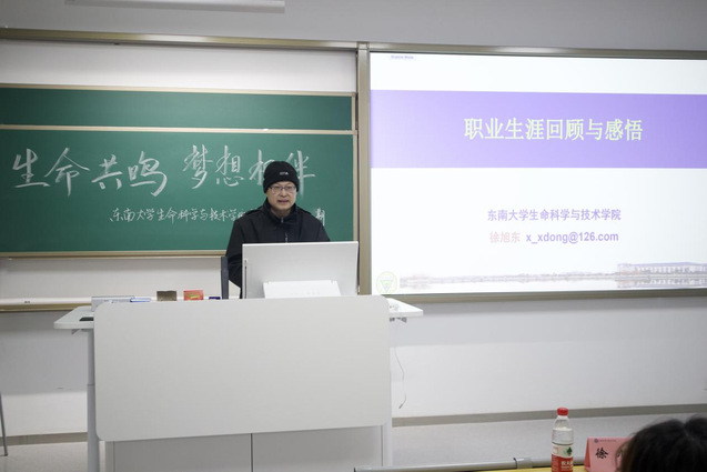 徐旭东老师分享了自己的科研与求学经历,他从中学时代对科学的热爱娓娓道来,高考虽与心仪物理系失之交臂,但在大学接触微生物学后逐渐明确方向,此后在工作与深造中不断积累经验,在多个高校和岗位上持续探索,历经诸多挑战。徐老师还特别指出合成生物学与 AI 的结合是生物工程专业的前沿方向,这一结合将为生物工程带来诸多突破机会。徐老师对同学们说,他深知大家在专业学习和未来规划方面存在诸多困惑,就像他曾经一样。他希望同学们能从他的经历中汲取经验,明白人生不会一帆风顺,但只要坚持就能找到方向。他强调专业学习虽然充满挑战,但只要有兴趣并坚持动手实践,就能在过程中收获乐趣。对于未来的选择,无论是专业方向、就业还是深造,都要充分考虑自身兴趣与实际情况,不要盲目跟风,也不要轻易放弃。