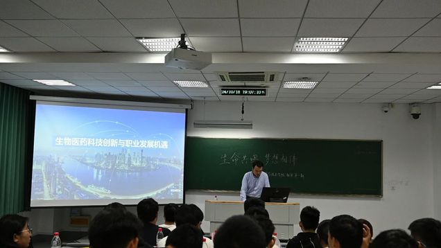 董世坤老师以全球生物医学工程和生物医药科技的发展概况与趋势为切入点,从政策、资金、市场和产业四个维度分析了国内外发展水平的显著差异及其成因。随后,董老师介绍了中国高校在教学和科研方面的现状,并以此为基础为同学们提供了职业发展规划的指导。董老师也凭借其深厚的专业知识和前瞻性视角,为大家深入剖析了在生物科学迅猛发展的时代背景下如何审时度势,以此帮助在座的同学们在未来的学习和职业选择中占据先机、从容应对。