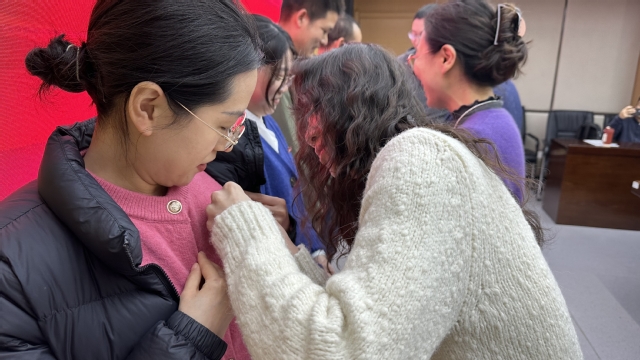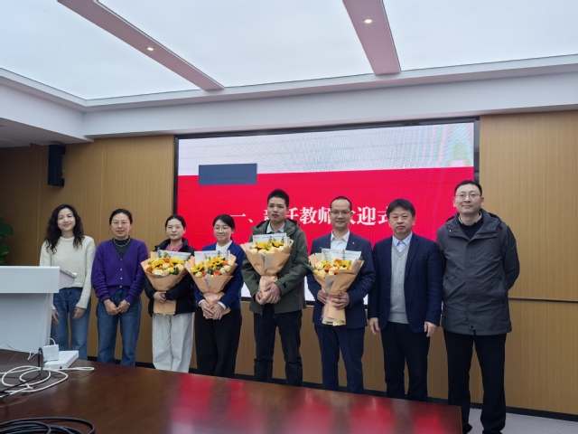 会上首先进行了新教师欢迎仪式。张虎、潘永柏、王月莹、陈诗锐四位新入职教师进行了自我介绍,随后经理韩俊海、党委书记洪宗训、科研平台主管张俞、教学平台主管吕卉卉分别为四位老师佩戴校徽,并送上鲜花表示欢迎。