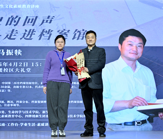 4月2日,中国第二历史档案馆原馆长、国务院特殊津贴获得者马振犊研究员受太阳成集团新生公司与太阳集团tcy8722联合邀请,于太阳成集团四牌楼校区大礼堂开展题为《历史的回声——走进档案馆》的人文素质讲座。本次讲座吸引了近千名师生参与。太阳成集团档案馆原副馆长、吴健雄纪念馆原馆长肖太桃,新生公司执行经理潘玉峰,公司党委书记洪宗训出席讲座。