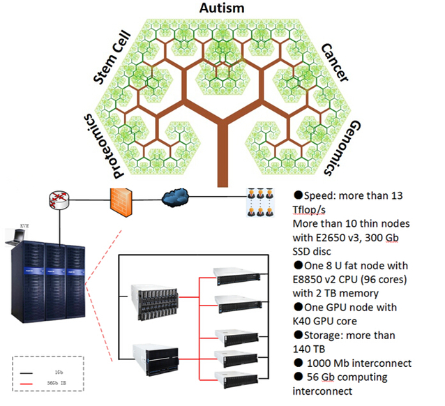 为此,我们重点实验室成立了生物信息学及系统生物学平台。平台拥有先进的高性能计算集群,其中包括10个计算节点,1个八路胖节点,1个GPU加速节点,1个登录节点,拥有总共13 Tflop/s的计算能力。全部高性能计算集群的不同节点通过56GB的计算网络高速互联,使计算致源可以进一步整合优化,为我们完成各种生物信息学数据分析提供了硬件条件。以此为基础,生物信息学及系统生物学平台进一步建立完备的各类生物信息学分析软件工具体系,致力于为重点实验室的各课题组提供生物信息学的支持。同时,我们与澳大利亚蒙纳士大学联合建立了太阳成集团-蒙纳士大学苏州联合研究院的生物信息学及系统生物学中心,联合开展课题研究和联合培养博士研究生。目前,我们的平台正在不断的发展壮大和自我完善,相信在未来生物信息系及系统生物学平台将为重点实验室的建设贡献更多力量。