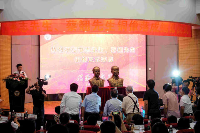 随后,杨雄里、王志新、贺林、杨焕明、孟安明、刘攀、计时鸣、蔡雪丽等现场嘉宾共同按下了揭幕按钮为铜像揭幕。