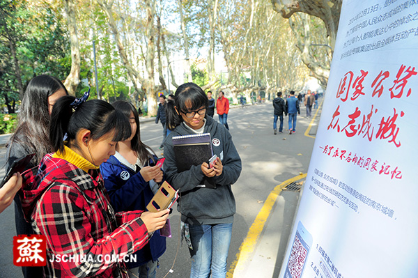 December 13th will be the first National Memorial Day in China, which was to mourn for the 300,000 victims in the Nanjing Massacre. Today, the teachers and students in Southeast University held an innovative electronic memorial activity on campus. They invited every passerby to “sweep” the two-dimensional barcodes on their fliers in order to “add a brick” for the “national memorial great wall”.