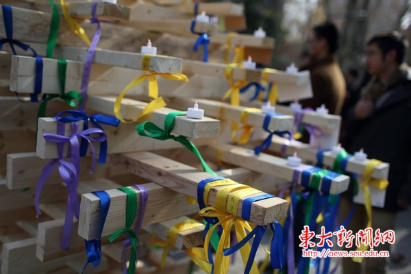 On December 12th, Southeast University held a ceremony in front of the auditorium of Sipailou Campus to mark China's first Nanjing Massacre National Memorial Day to memorialize victims slaughtered by Japanese aggressors in World War II. More than 200 teachers and students participated in the ceremony and expressed their mourning and reflection.