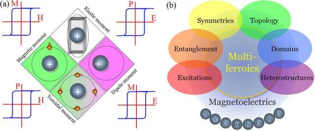 His article Multiferroic materials and magnetoelectric physics: symmetry, entanglement, excitation, and topologyfirstlygives a brief historical retrospect of multiferroic researches, then describes ferroelectric, physic connotation and relevant physical effects in magnetic materials from the perspective of entanglement, excitation, symmetry and topology. It summarizes the current classification of multiferroics and individually explains the physical mechanism, also, it introduces the practical application of magnetoelectric coupling in membrane and heterostructure. Lively, it demonstrates the developing process from basic science theory to the research of practical devices. Finally, the article discusses related frontier issues about magnetoelectric topology.