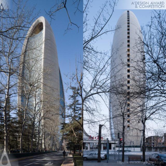 As the only award-winning work from china mainland, this high-rise building has been one of the most important constructions in Beijing since 2008 Olympic Game, which is located in the heart of Beijing's CBD. We try to do something which will be a creative, contemporary and modern, but also reflect our culture and tradition. The streamline body is shaped by cutting an ellipsoid with three hyperboloids, which there is no dead point for all view angles. We use glazed terracotta to cover the 3D round shapes, which is traditional Chinese material. The form of the High-rise building comes from Chinese character People, corresponding to the title of the media People's Daily. The triangular plan is transformed from the structure of the character People. And the material used on outer supporter is glazed terracotta, which comes from roof of traditional Chinese temples.