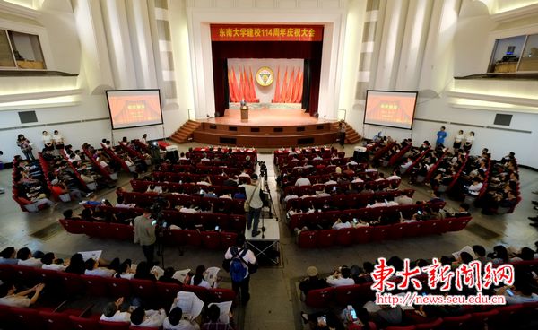 On the morning of June 6th, 2016, Southeast University, founded in 1902 as Sanjiang Normal School, celebrated her 114th anniversary. Professor Yi Hong, Chairman of the Southeast University CPC Standing Committee, was the host of the celebration conference. Attendants at the conference included: Zhang Guangjun, President of SEU and other school leaders, Distinguished Alumni Representatives, chairman of Nanjing Sciyon Automation Group, Liu Guoyao and his spouse, as well as more zhan a thousand staff and students of SEU.