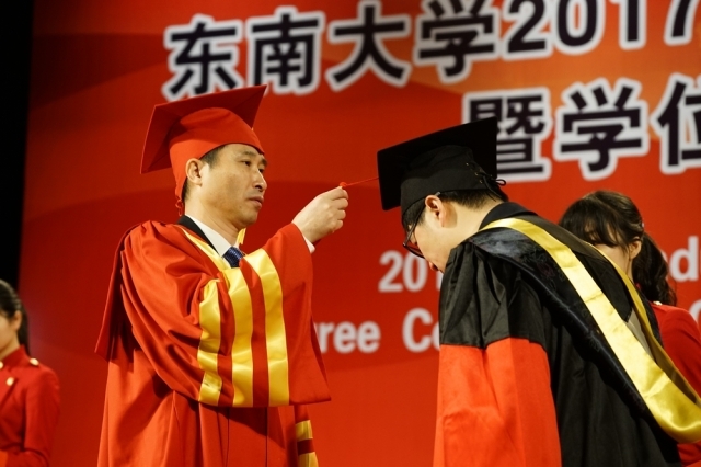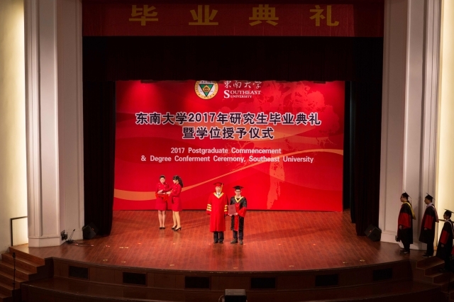 In the morning of March 25, 2017 Postgraduate Commencement and Degree Conferment Ceremony, Southeast University, was held in the auditorium of Si Pailou Campus. Leaders of the university, President Mr. Yi Hong, Mr. Zhang Guangquan, Mr. Huang Dawei, Mr. Wu Gang, Mr. Jin Baosheng, Mr. Zhou Youyong, outstanding alumni representatives, the heads of main offices and party and government of all departments, teacher representatives, graduate students and families of graduate, attended the ceremony. Mr. Jin Baosheng, member of SEU Academic Degree Evaluation Committee, vice president and dean of the graduate school, presided over the graduation commencement and degree conferment ceremony.