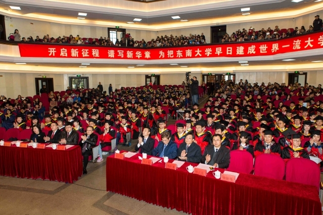 In his speech, Mr. Zhang pointed out that the young generation should devote themselves in the great practice of socialism with Chinese characteristics in the bloom of youth glory, and dreamed big in the tide of popular entrepreneurship and innovation. He put forward three hopes. This first one was to pursue the lofty. The young talent of SEU was not only the main force of national innovation driven development strategy, but also the backbone of national revitalization. He hoped that the graduates did not forget the initial determination, stuck to pursue lofty causes, cultivated their official sensation and pursued the perfection. The youth were encouraged to combine their ideal into the pursuit of Chinese Dream -- the great rejuvenation of the Chinese nation. They were supposed to be the pioneer of innovation and reformation. The second was to maintain the mindfulness. Nowadays, the young generation was heading forward along with two centenary goals. They encountered the best opportunities as well as great pressure. He hoped that the graduates did not follow the crowd, and were not easily influenced by circumstances. Hope they were not impatient, and confused. Hope they dreamed big while poor, stayed humble while rich. Only when they really understood the meaning of “leading a simple life will yield a clear mind, and having inner peace will help us see far”, did they achieve much longer and more profound success and grow up. Last, practice was the best. Empty talks would lead the country astray and hard work can rejuvenate the nation. This was the answer and comment to the nation’s future. Students of SEU had a mindset of paying quietly, and merits of taking action instead of speaking. He hoped that all graduates always engaged themselves in practice, and maintained perseverance, grasped their own life direction and trajectory, being a practitioner and inheritor of striving for perfection.